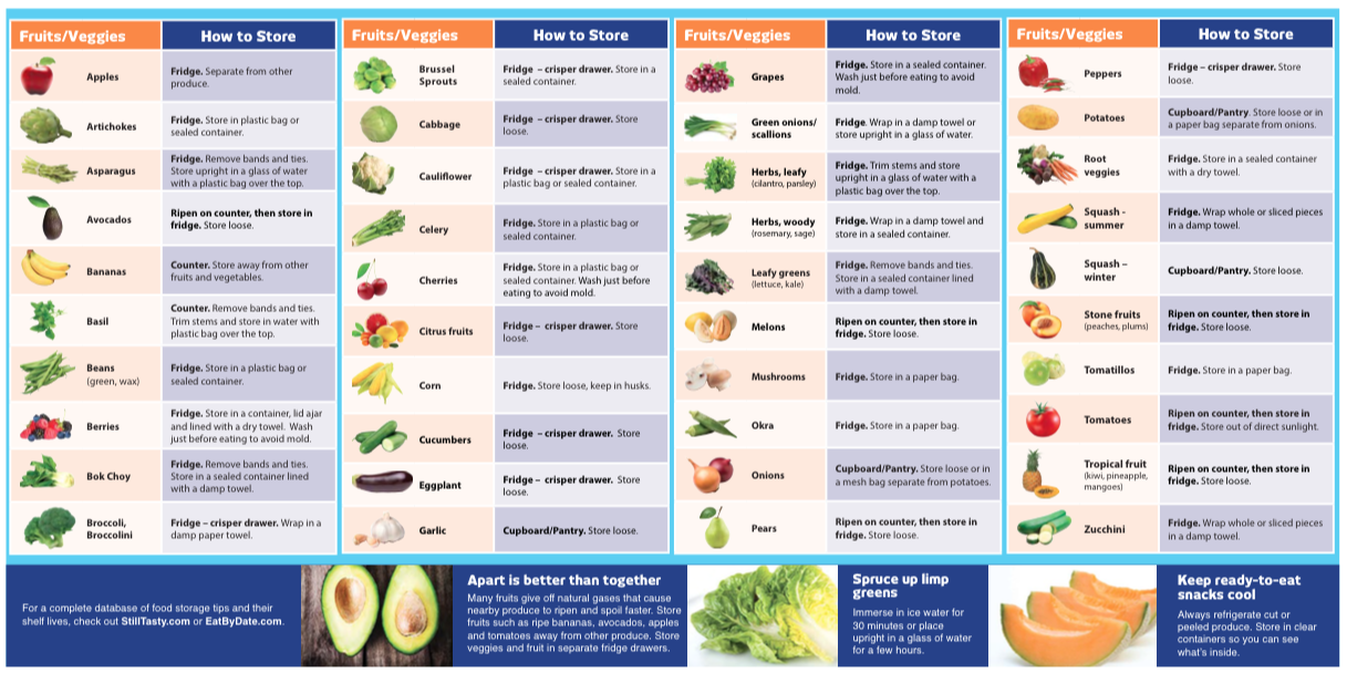 Take a look at King County's Fruit and Vegetable Storage Guide.
